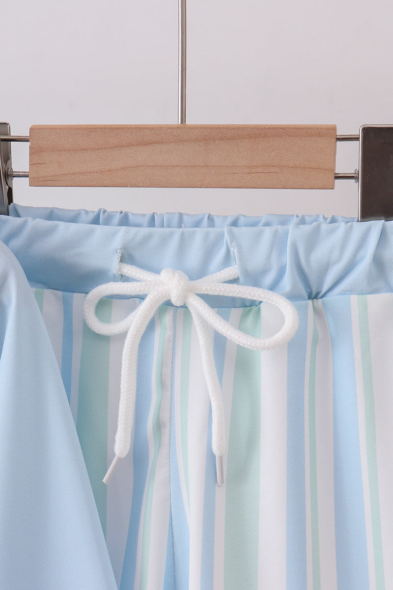 Blue character embroidery stripe long sleeve swimsuit
