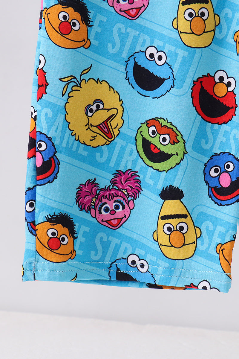 Blue character print bamboo jumpsuit