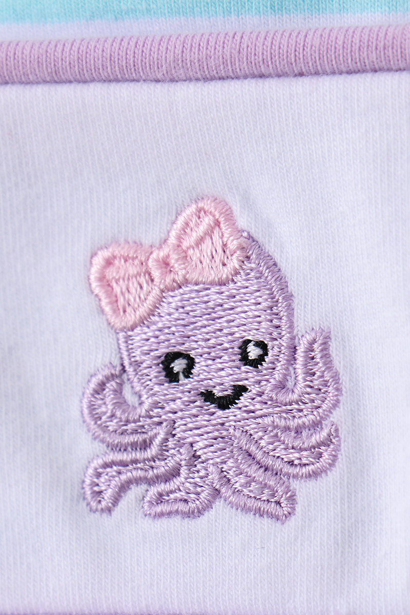 Dive into whimsy with this charming blue dress featuring an adorable octopus embroidery that brings ocean-inspired joy to your wardrobe. Playful stripes dance across the fabric while delicate ruffles add a flirty, feminine touch. Perfect for those who love quirky details and seaside charm, this dress combines comfort with personality. Whether you're heading to a casual outing or want to make a splash at your next gathering, this octopus-themed piece is sure to turn heads and spark smiles.