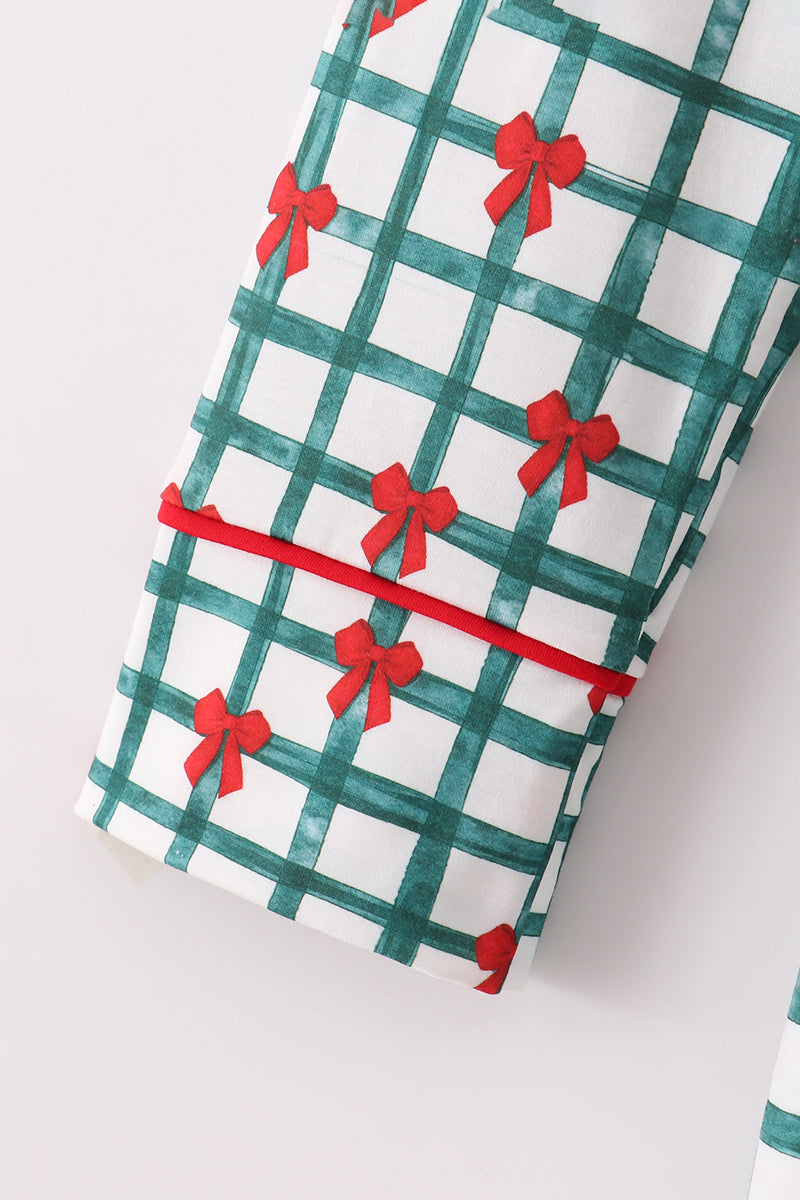 Bring a dash of fun to bedtime with this Green Bow Plaid Mom Gown. Its charming plaid pattern, accented by playful green bows, adds a cozy yet whimsical touch. Designed for comfort and easy wear, it’s perfect for relaxing at home while keeping your style effortlessly delightful.