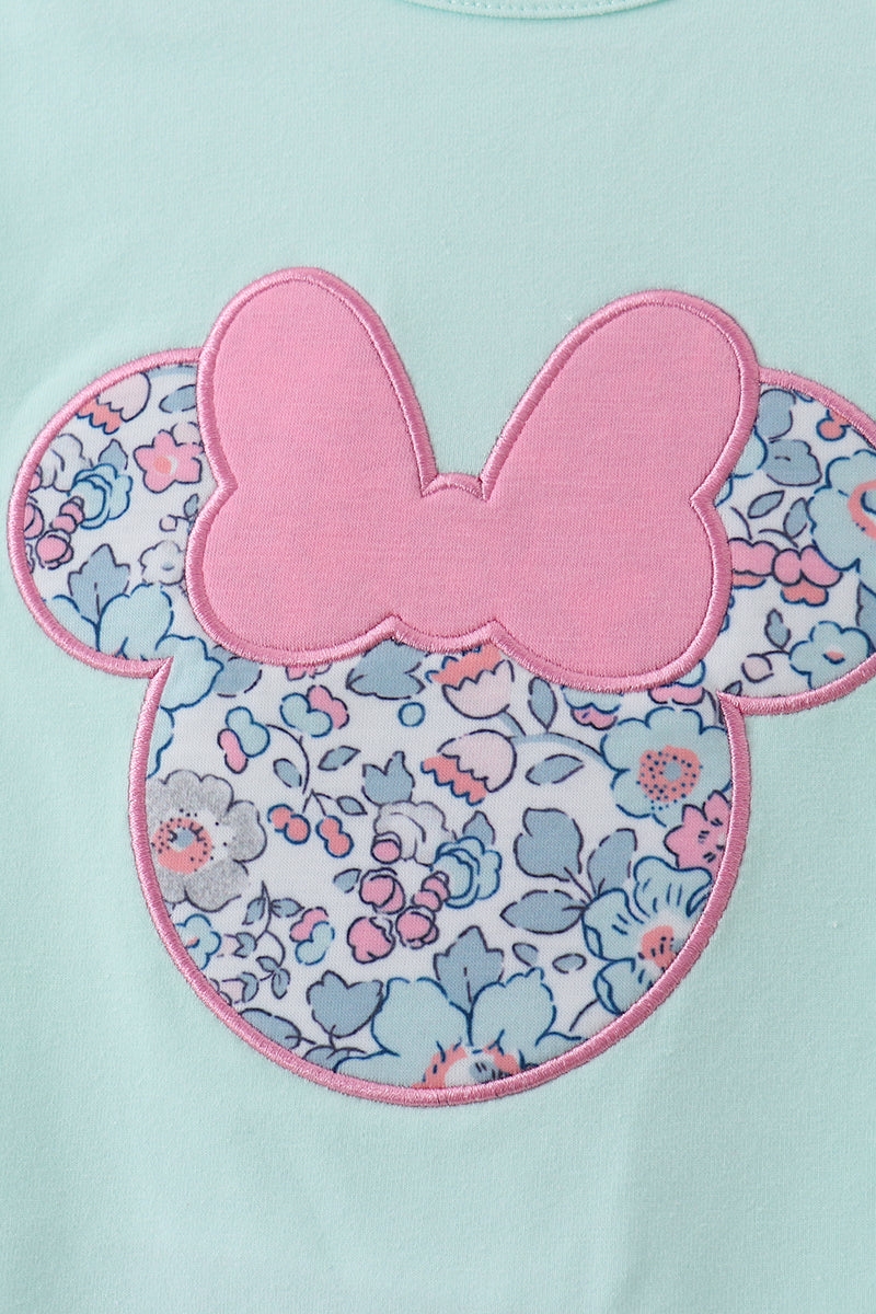 Mint floral character applique ruffle dress