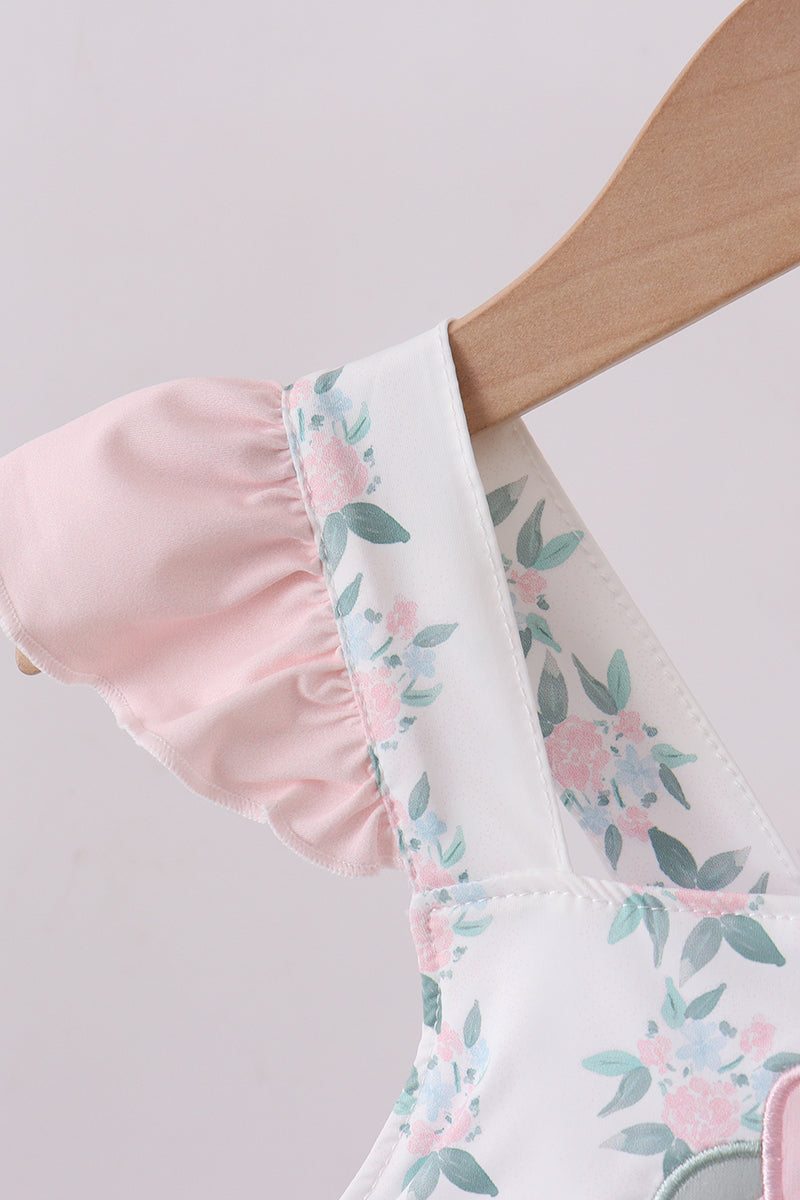 Pink character applique floral ruffle 2pc swimsuit