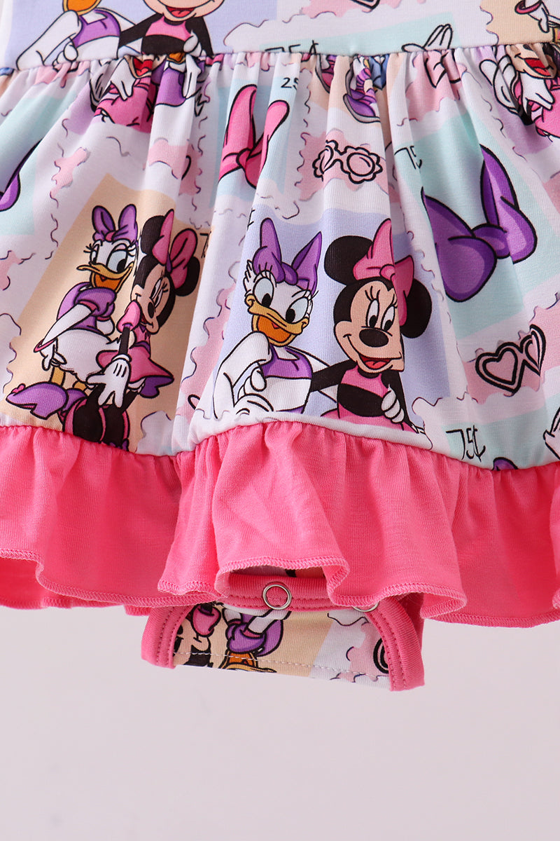 Pink character bamboo ruffle romper