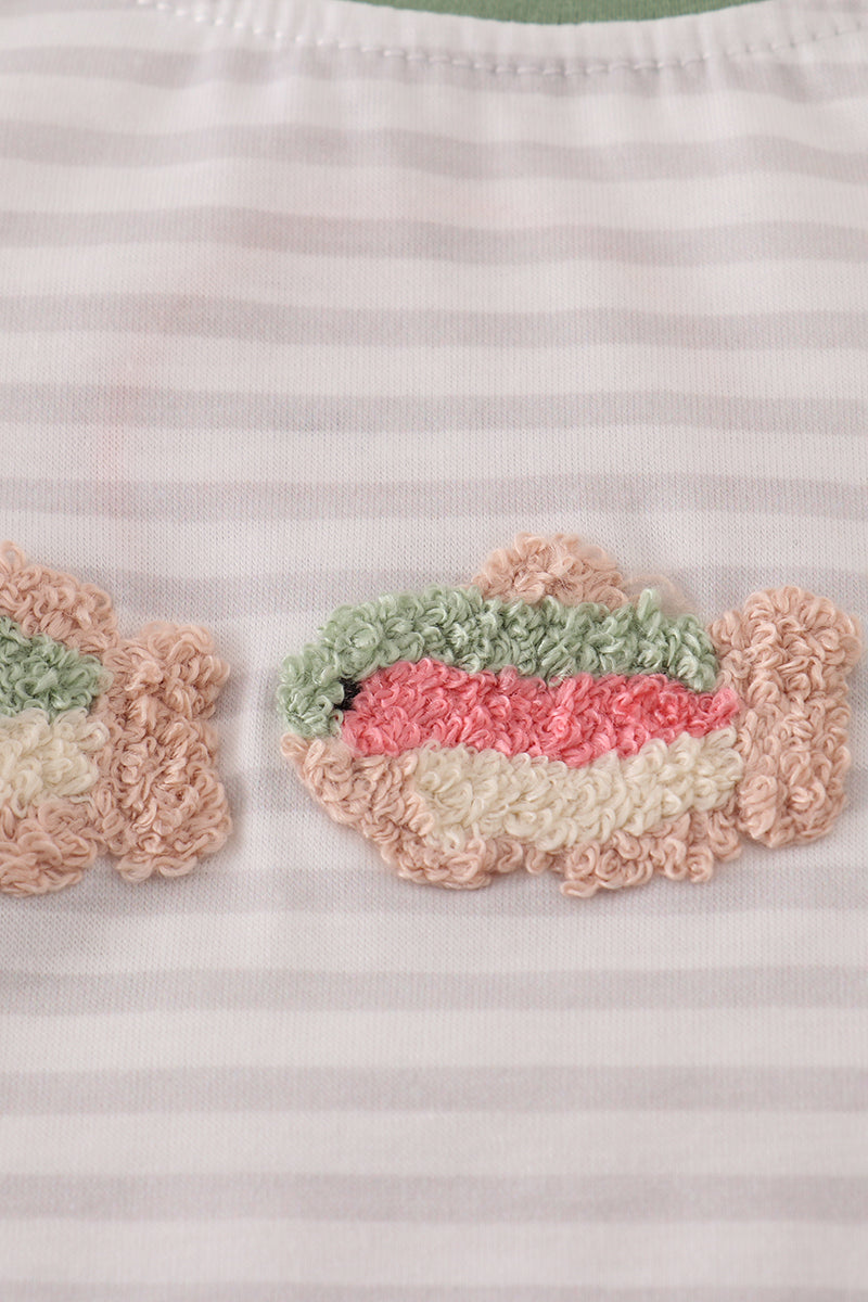Sage fish french knot stripe pajama set